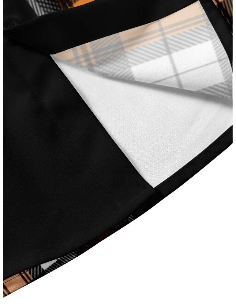 • Plus Size Men's Lapel Button Color Block Long Sleeve Shirt, Comfortable Shirts Jackets